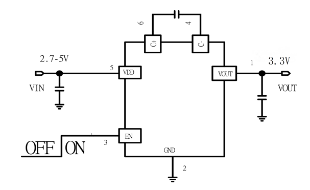 外部元件数量较少(VDD和VOUT处有一个快速电容和两个小旁路电容)使得芯片非常适用于电池供电的小型应用。